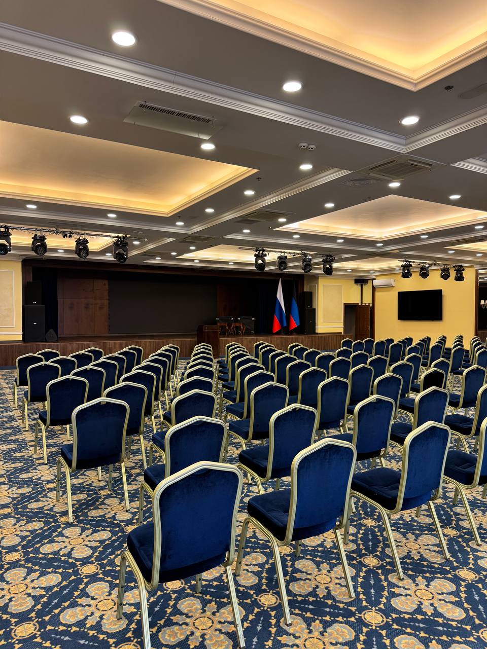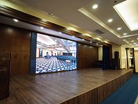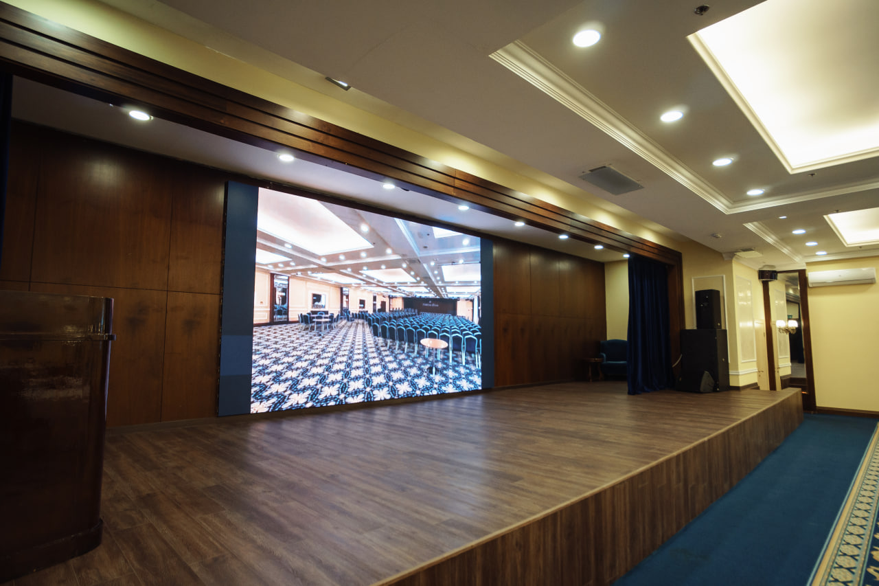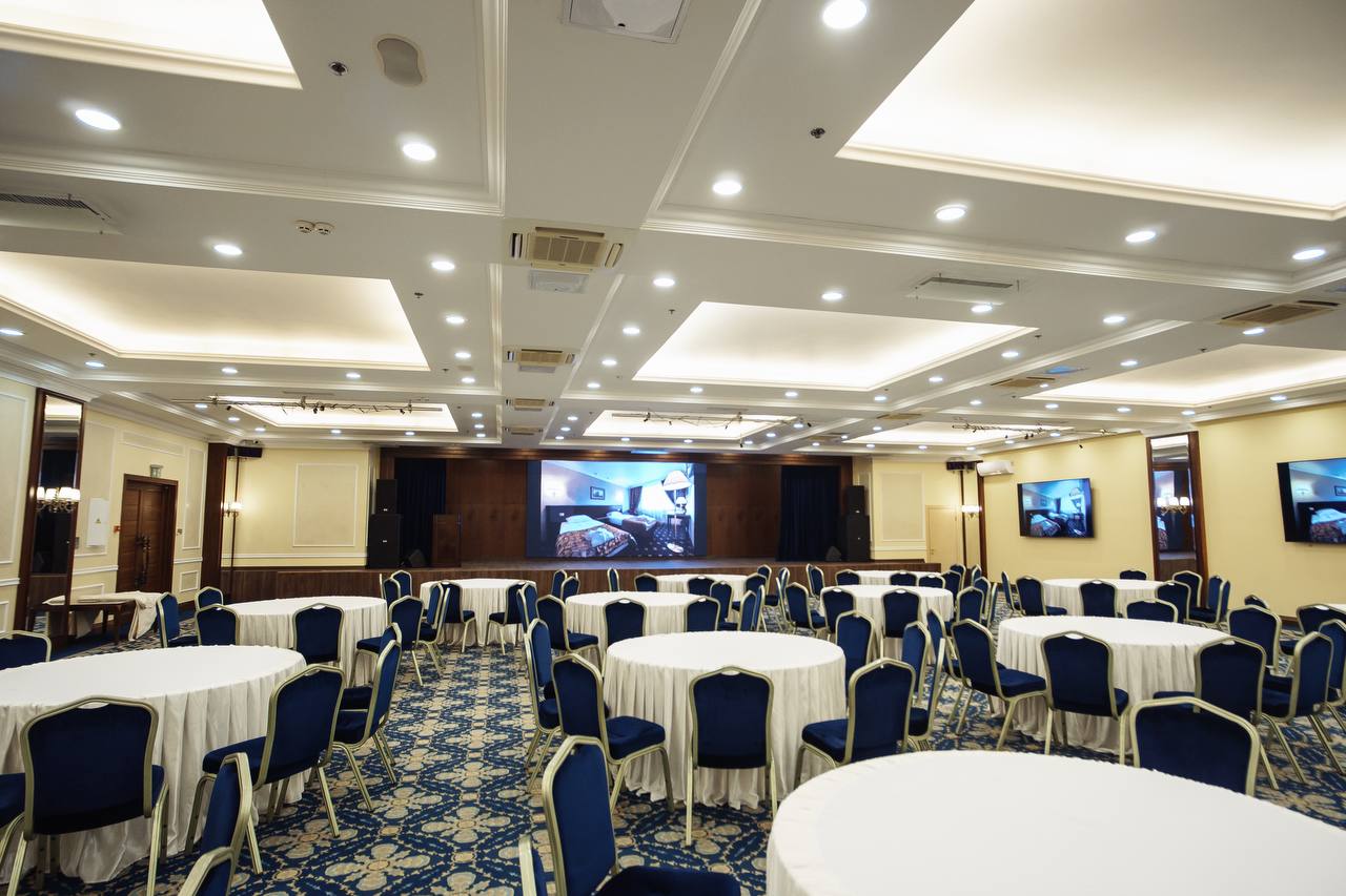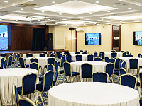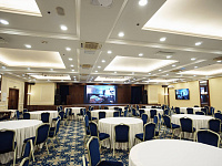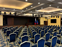 В Вашем распоряжении просторный конференц-зал «САПФИР», рассчитанный на 500 человек. Конференц-зал оснащен всем необходимым оборудованием: микрофоны, проектор, экран, звуковое оборудование, световые приборы, генератор тумана и т.д.