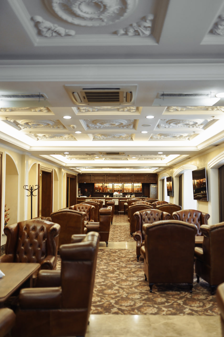 Лобби бар – расположен в уютном холле гостиницы и создает атмосферу расслабленности и комфорта. Это идеальное место для встреч с друзьями или расслабляющего вечера после насыщенного дня. Интерьер оформлен в современном стиле с мягкими диванами и удобными креслами, создавая идеальное место для отдыха. Меню лобби-бара предлагает широкий выбор основных блюд европейской кухни, различных закусок и десертов, а также напитков, включая классические коктейли, разнообразные вина и безалкогольные варианты.