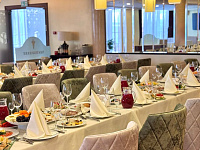 Комплекс располагает просторным рестораном, вместимостью до 150 персон, где можно организовать праздничные банкеты и свадьбы.